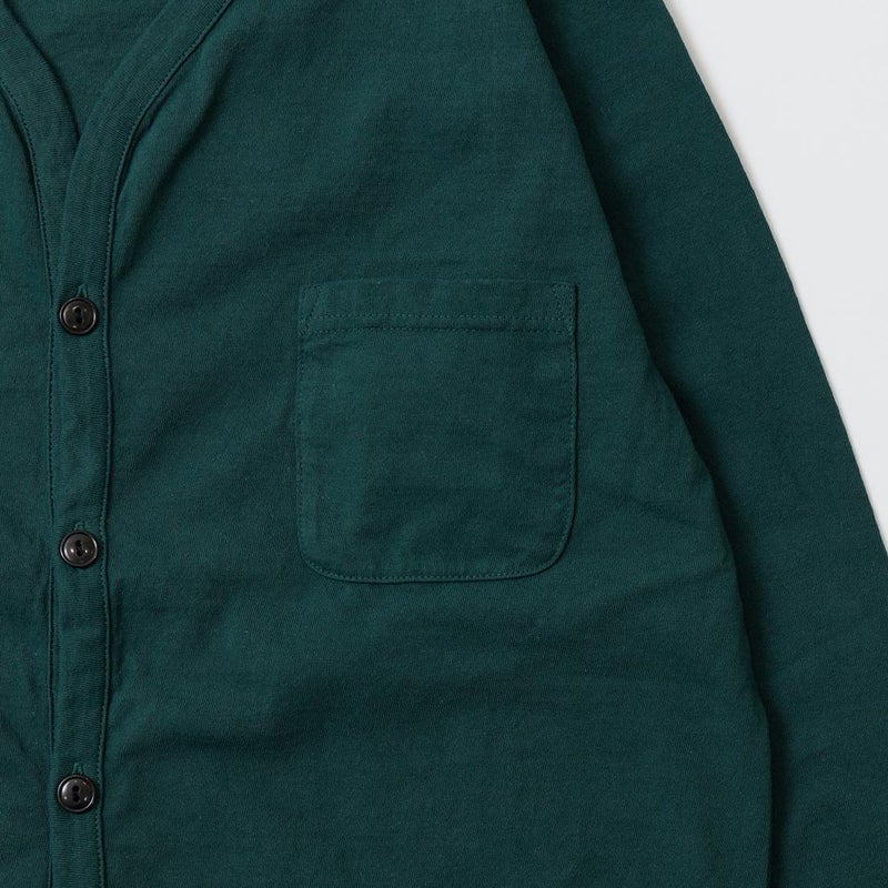7. FELCO (フェルコ) L/S BINDER V NECK CARDIGAN W/POCKET 7oz 16SINGLE RUFFY JERSEY - GREEN