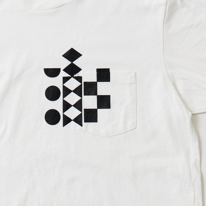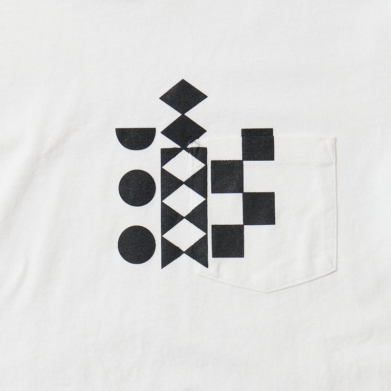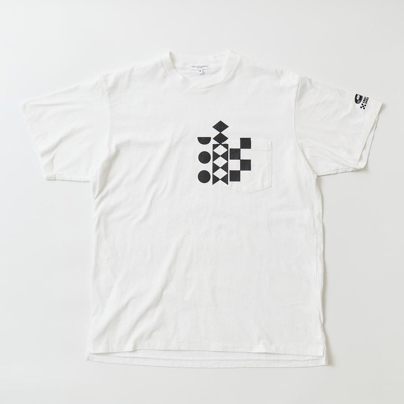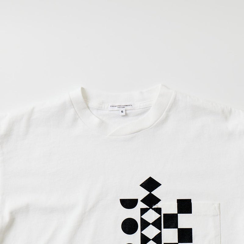 ENGINEERED GARMENTS (エンジニアドガーメンツ) PRINTED CROSS CREW NECK T-SHIRT MULTI PATTERN - WHITE