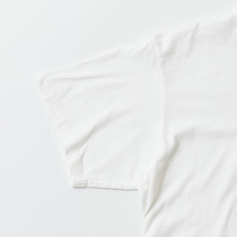 170センチ65キロで「S」サイズでゆったりとした着用感です。スッキリ着るなら「XS」サイズを選びます。着丈はやや長めの作りのシーズナルTシャツ。真夏こそ主役になるアイテム。だからこういう雰囲気のあるTシャツって買い揃えたくなりますね。