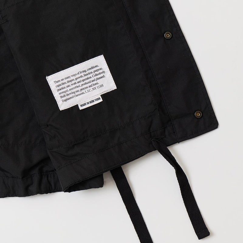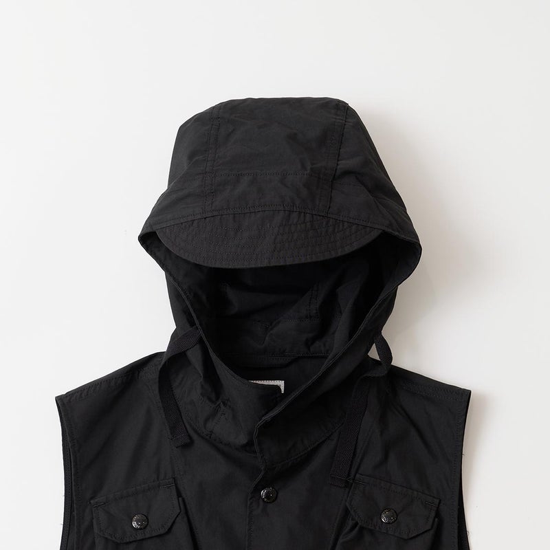 ENGINEERED GARMENTS(エンジニアドガーメンツ)のFIELD VEST LT WEIGHT NYCO。マウンテンパーカの袖を無くしたようなデザインのフィールドベスト。フロントはスナップ仕様。胸、腰に左右ポケットが1つづつ。ドローコード入りのフードを装備。背面にも左右にポケットを装備。裾部分にもドローコードが装備されておりシルエットアレンジが可能。素材は肌触りが良く独特の風合いを持つナイロンとコットンを混紡したポプリン生地を使用。