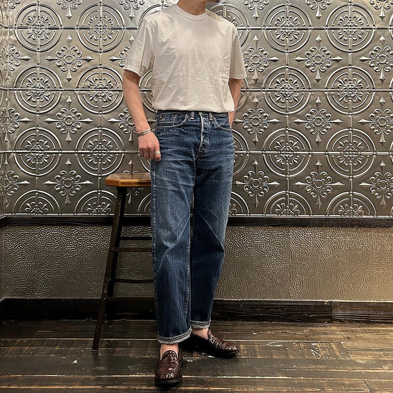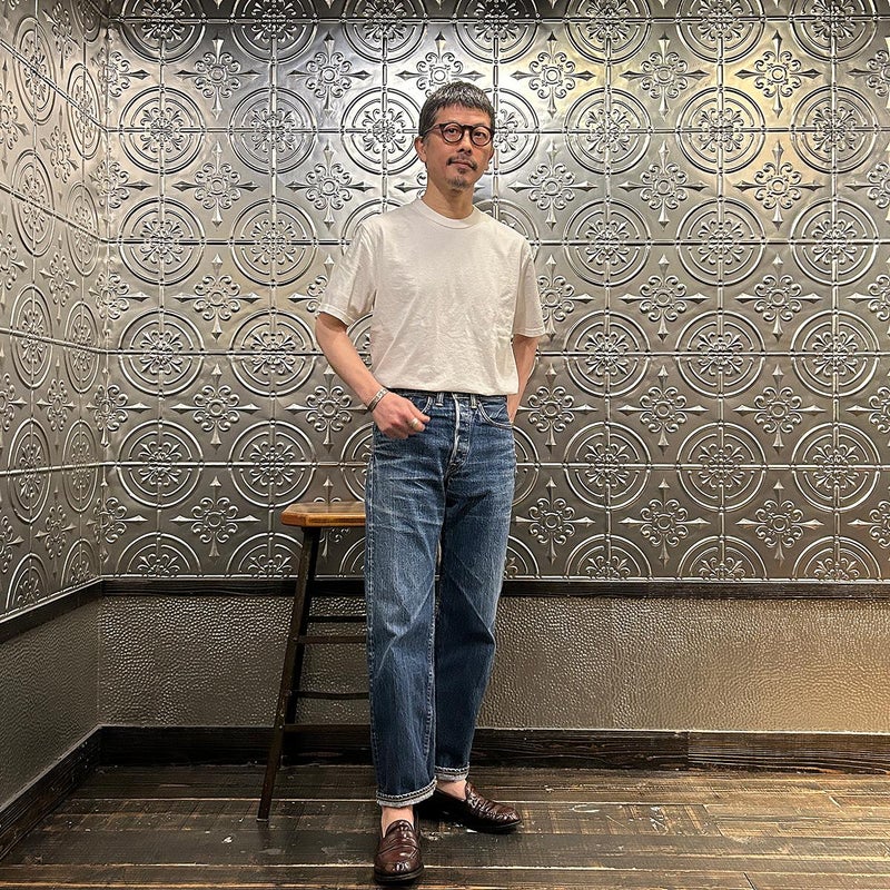 170センチ65キロで「M」サイズで少しゆとりのある着用感。しっかりと補強された首周りのバインダー仕様。気軽にガシガシ洗って着続けられる頼もしい1着。しかも暑い時期でも着易い薄くて軽い生地感。何枚持っていても困らない合わせ易さ&着回し抜群のTシャツです。