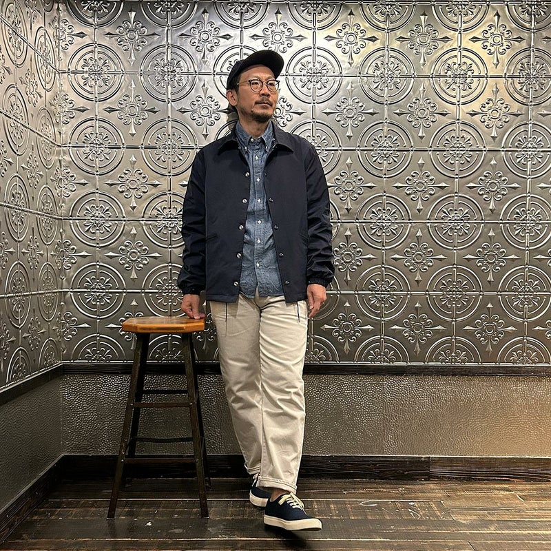 170センチ68キロやや肩幅広めの私の体型でサイズ選びは38サイズで丁度良い着用感です。この23秋冬シーズンから以前のフィットとは違ってゆったりとしたつくりのクラシックフィット仕様に変更。なので、38サイズでもインナーに地厚めのパーカーやスウェットを着てもゆったりとした着用感で羽織れます。アメカジ、スポーツスタイル好きな方にはオススメしたくなるアイテム。中にガッツリ着込めば冬でも着れますし、シャツやカットソーぐらいの軽めのアイテムを着て羽織るぐらいでしたら涼しい時期でも着れますからね。そういう意味では長いシーズン重宝して頂ける1着ですね。