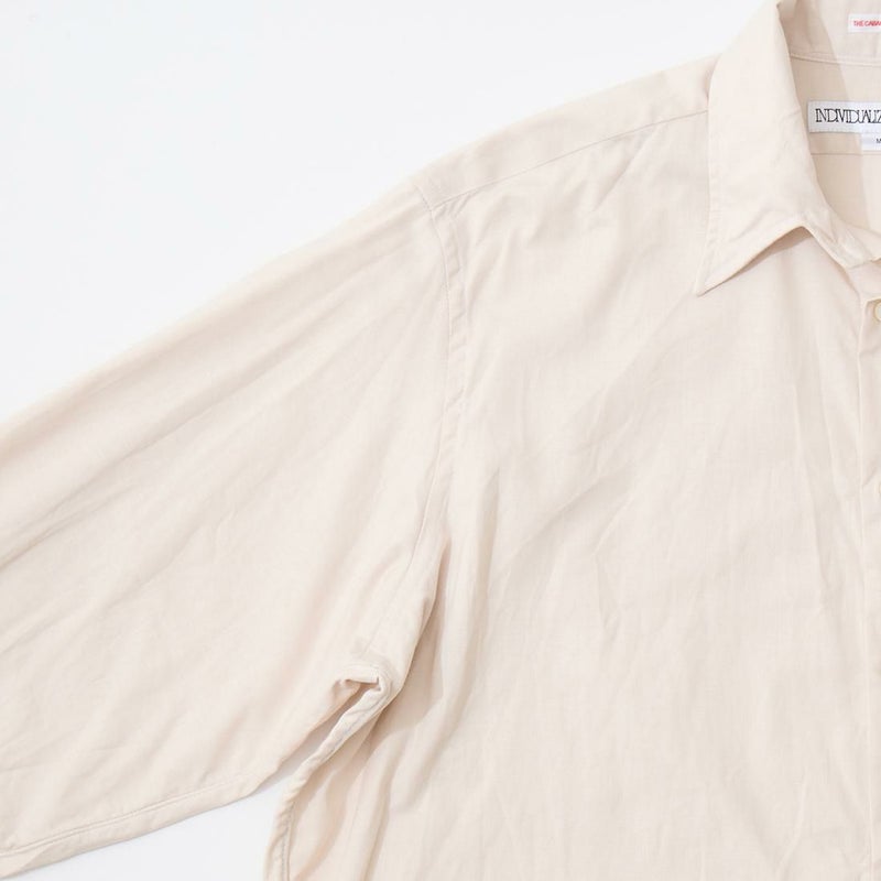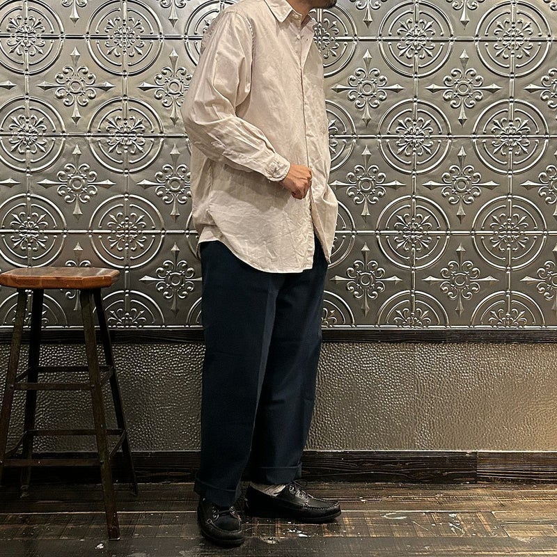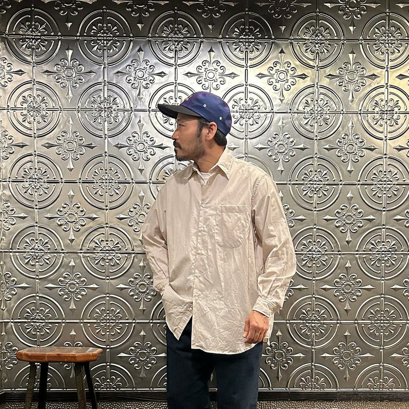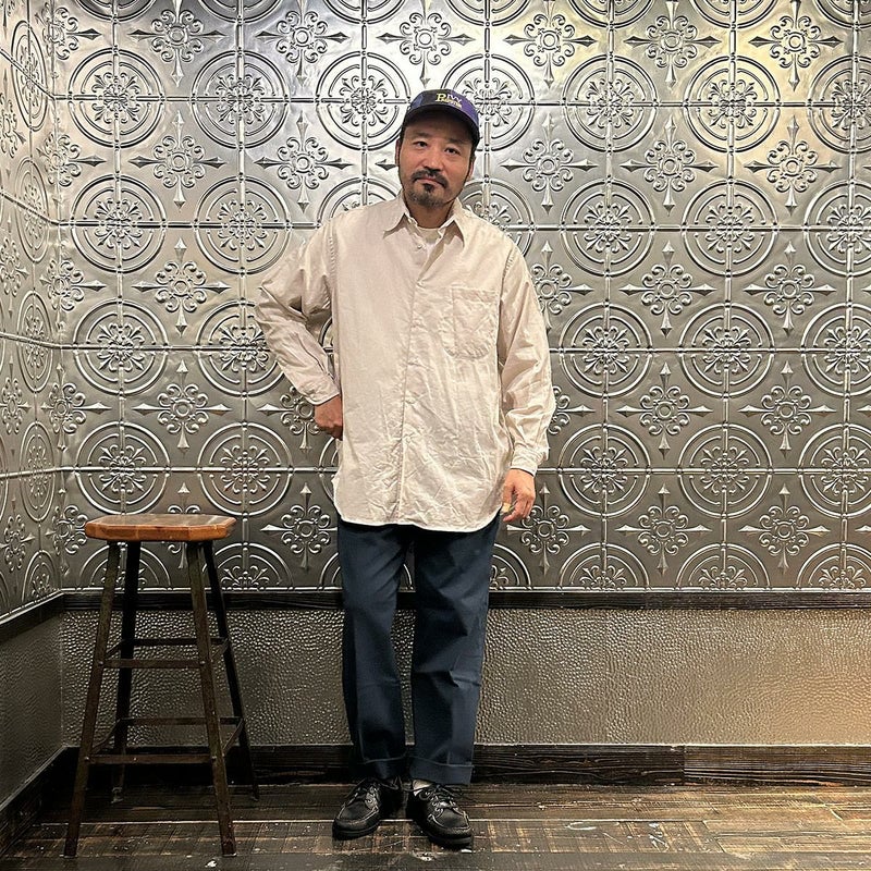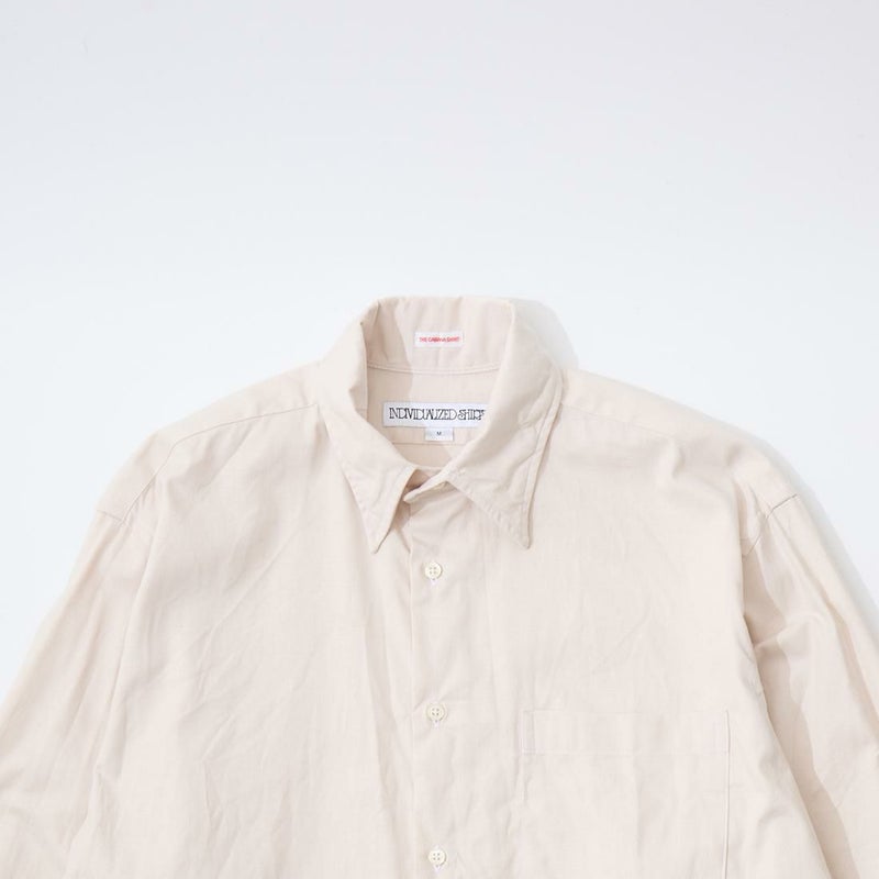 INDIVIDUALIZED SHIRTS(インディビジュアライズドシャツ)に別注したCABANA SHIRT HERITAGE CHAMBRAY。インディビジュアライズドシャツでは珍しいリゾート感のある襟。台襟と襟が一体になっている仕様の「CABANA カバナ」という襟型。フロントは前立てのないフレンチフロント。左胸のパッチポケットはあえて大き目サイズのモノをセレクト。カフは小さめでカジュアル感の強い仕様。袖も従来の袖よりも太いワイドスリーブ仕様。全体的にシルエットはゆったり目。素材はアメリカンな粗野な雰囲気を持つヘリテージシャンブレー。納品時は未洗いのものを当店で一回水洗いをしてあります。