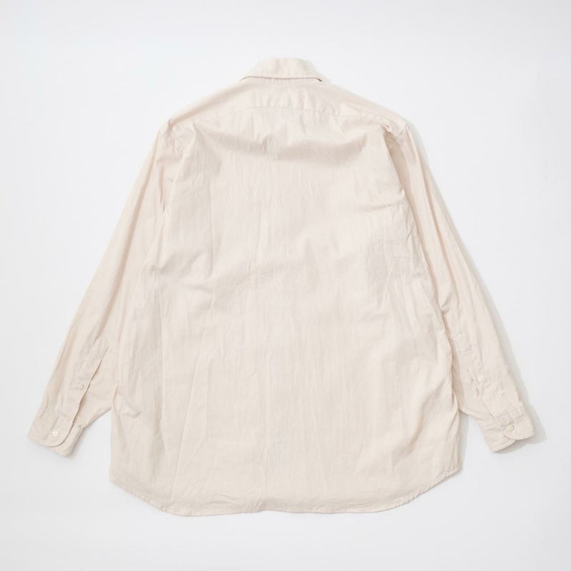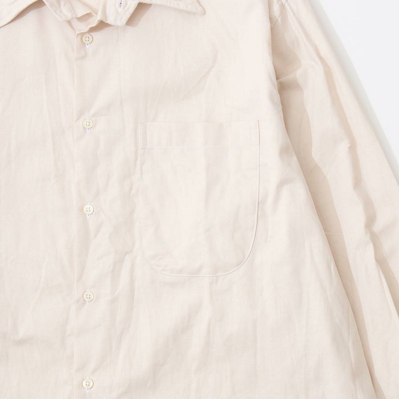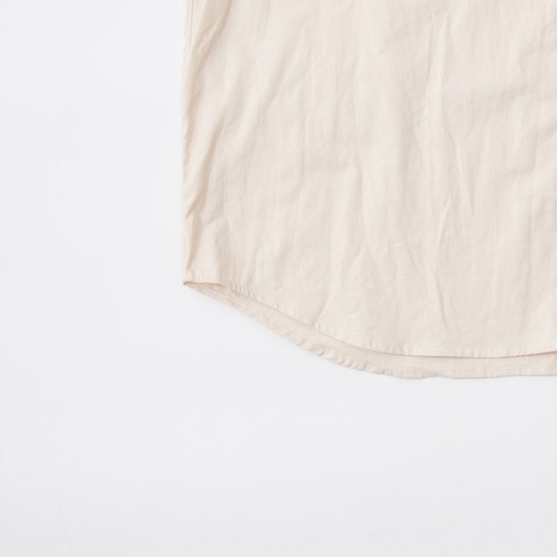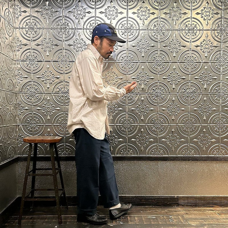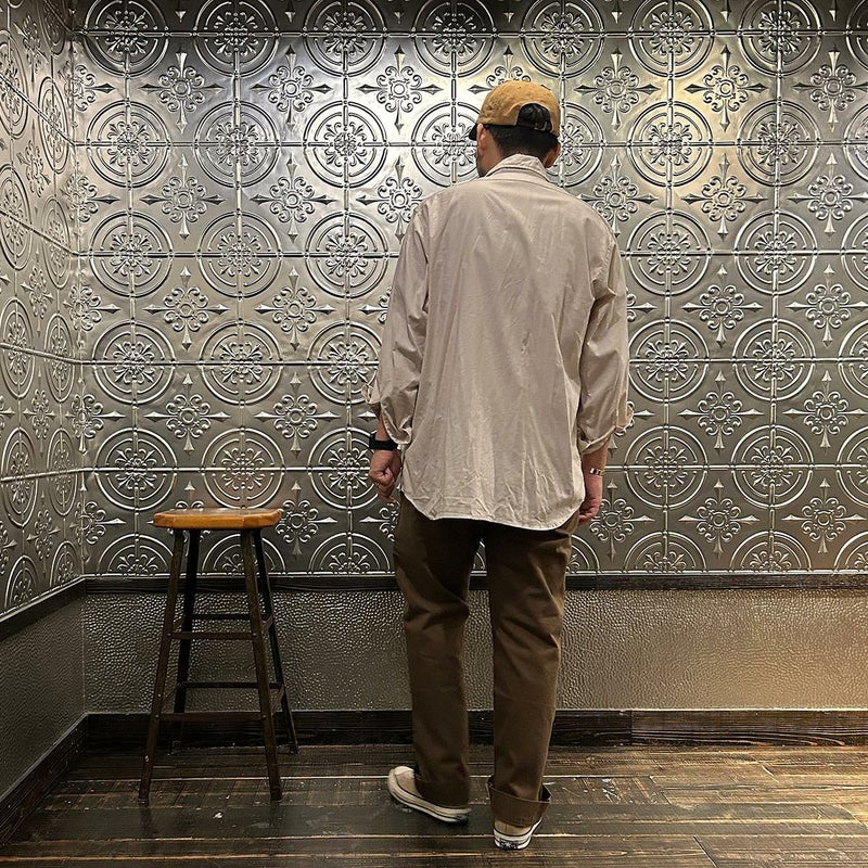 INDIVIDUALIZED SHIRTS(インディビジュアライズドシャツ)に別注したCABANA SHIRT HERITAGE CHAMBRAY。インディビジュアライズドシャツでは珍しいリゾート感のある襟。台襟と襟が一体になっている仕様の「CABANA カバナ」という襟型。フロントは前立てのないフレンチフロント。左胸のパッチポケットはあえて大き目サイズのモノをセレクト。カフは小さめでカジュアル感の強い仕様。袖も従来の袖よりも太いワイドスリーブ仕様。全体的にシルエットはゆったり目。素材はアメリカンな粗野な雰囲気を持つヘリテージシャンブレー。納品時は未洗いのものを当店で一回水洗いをしてあります。