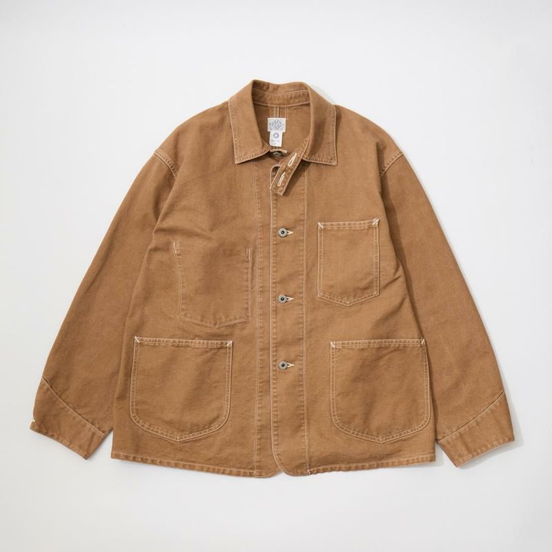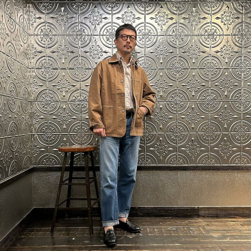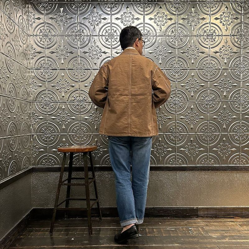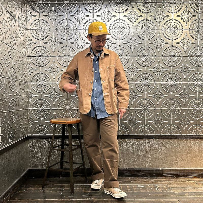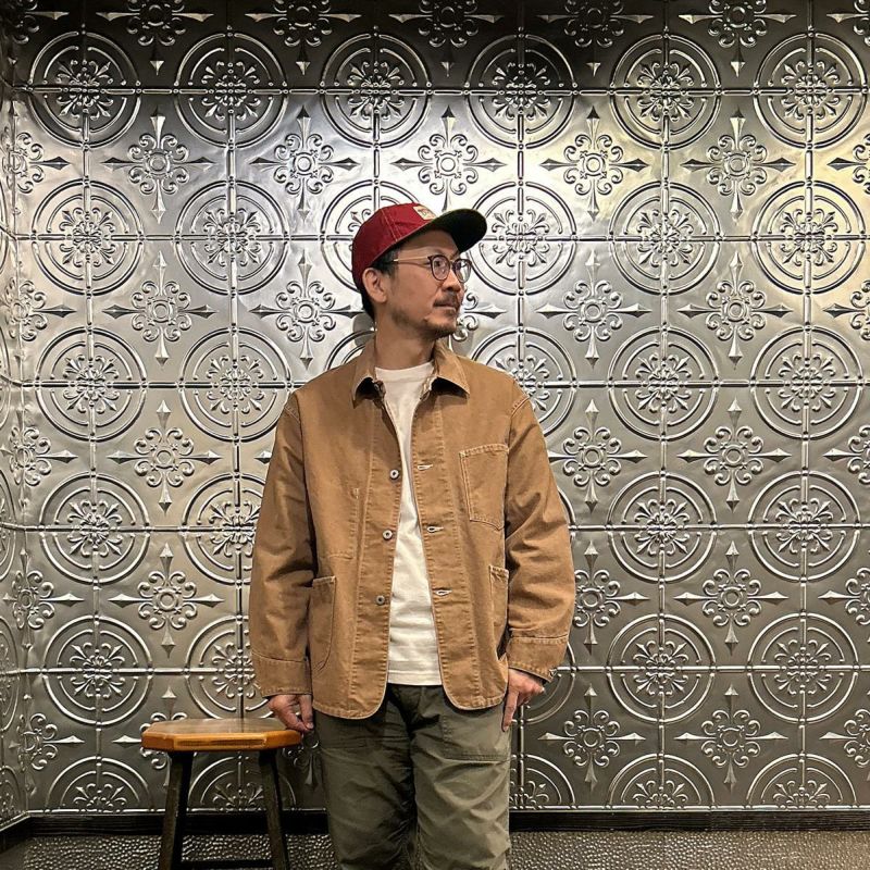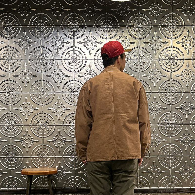 172センチ60キロでサイズは「S」で少しゆとりのあるサイズです。中にそれなりに厚手のモノが着込めるサイズ感。最近のサイズ感、雰囲気、気分を考えるとこのサイズがベストです。従来のブランドのラインナップではあまりなかった、製品加工された雰囲気が凄くカッコ良いです。キャンバスダックの新品の硬さがなく着始めから体に馴染むのが嬉しいですね。新品のダックってあまりカッコイイものでもないですしね。私みたいなガチのワークウェアが苦手な方でもしっくりくるのはサイズ感や加工による生地の雰囲気、柔らかさが要因だと思います。これはマジでカッコイイっす!