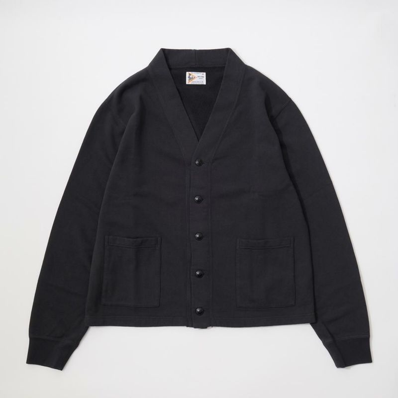 FELCO (フェルコ) CLASSIC FIT 10oz TERRY V NECK BUTTON CARDIGAN - 08 BLACK