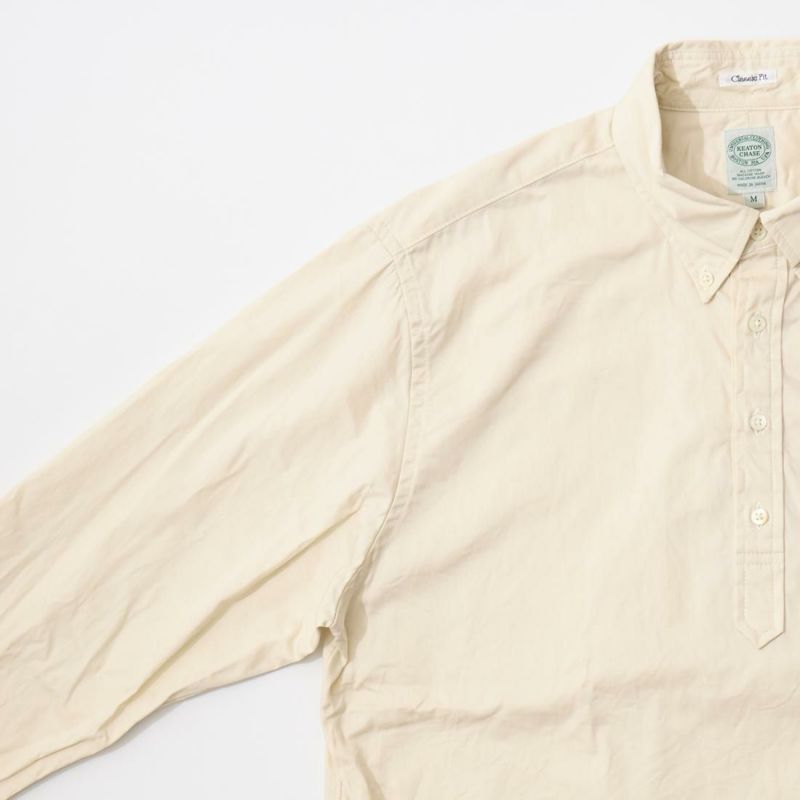KEATON CHASE USA (キートンチェイスUSA) L/S CLASSIC FIT PULLOVER BD SHIRT 30S COTTON DYED TWILL - NATURAL