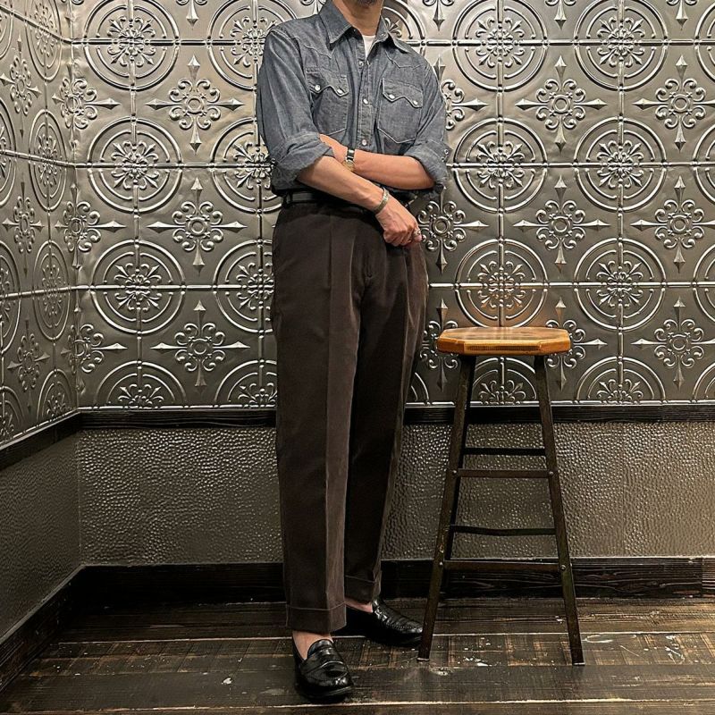 172センチ60キロでサイズは「14」でジャストサイズです。同型を複数生地で展開しましたがこのシャンブレータイプが一番汎用性が高く季節問わず着て頂けます。ウェスタンシャツ好きな私としては待望過ぎました。本来のウェスタンシャツの様に細い身幅で長い着丈、その割に腕回りは太いというアンバランスなものではなく、計算された今着れるウェスタンシャツに仕上がっています。イタリアのシャツブランドが提案するスタイリッシュで艶っぽいモノではなく、かといってゴリゴリのアメカジでもないウェスタンシャツって探してもないんです。これは展示会で見かけた時にイメージにピッタリだったので嬉しくて沢山オーダーしちゃいました。私のオススメはジャケットのインナー。ドレスっぽいスタイルのカジュアルダウンに使うウェスタンシャツがカッコイイと思っています。もちろんゴリゴリのアメカジ、ウェスタンスタイルにも素敵だと思います!