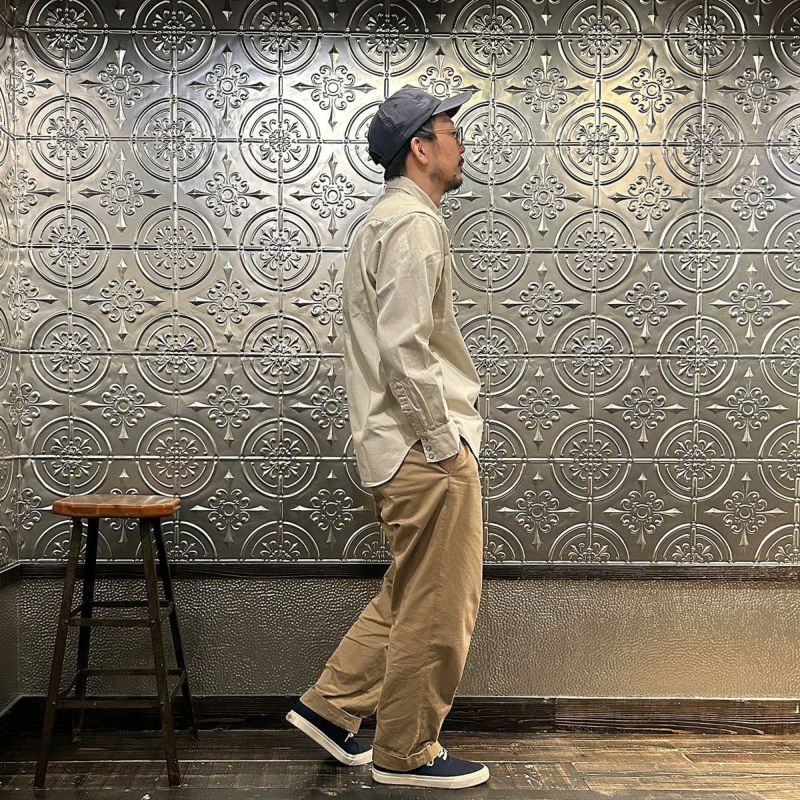 170センチ68キロで「15」サイズで丁度良いです。少し緩めに着るならこのサイズです。アメリカンな雰囲気漂うウエスタンシャツ。ディテール、縫製、サイズ感、生地。ワーカーズらしい拘りが詰まった1着。とくにガチっとしたコシのある厚めの生地感が個人的にはお気に入り。