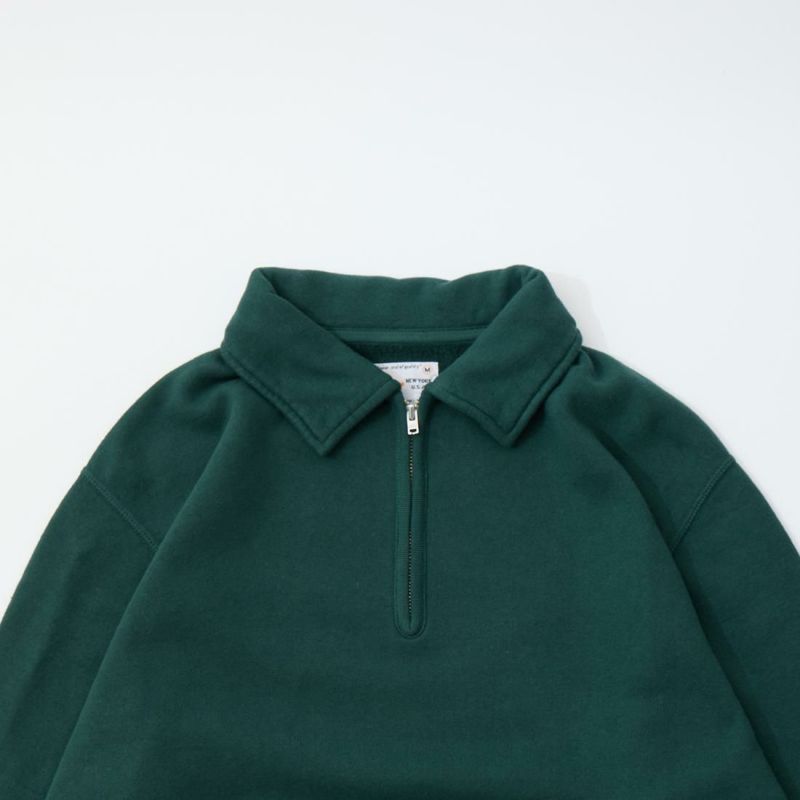 FELCO (フェルコ) 10oz LT WEIGHT FRENCH TERRY L/S HALF ZIP COLLARED SWEATSHIRT - FOREST GREEN