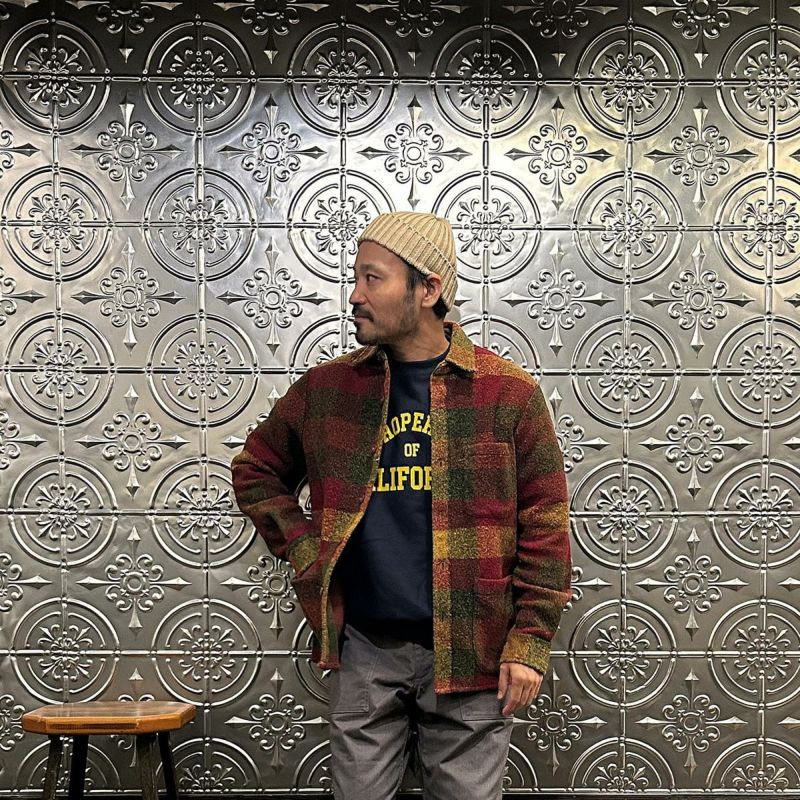 170センチ68キロで「46」で丁度良いサイズです。このサイズであれば、中にしっかり着込めるため真冬の着用も可能です。ミリタリージャケットをベースにデザインされた雰囲気のある1着。軽くて肌触りの良い生地感。シンプルに合わせても様になるジャケット。デニム、チノパン、ウールパンツで合わせたくなりますね。