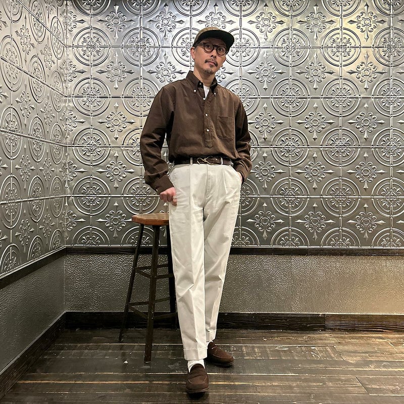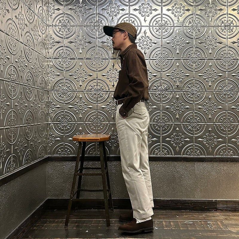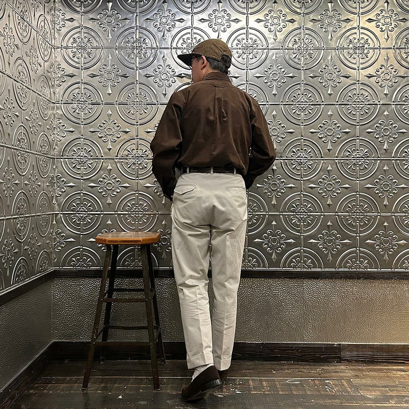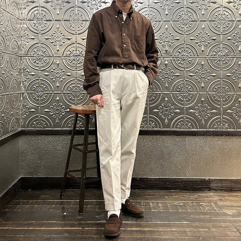 WORKERS(ワーカーズ)のMODIFIED PULLOVER BD SHIRT CORDUROY。ボタンダウンのプルオーバータイプの長袖シャツ。少し大きめの襟が旧き良きアメリカントラッドな雰囲気。左胸にパッチポケットが1つというシンプルなデザイン。 ウェスト部分の絞りは弱く、胴回りがゆったりしたシルエット。素材は5oz程のコーデュロイ。季節感のある1着。