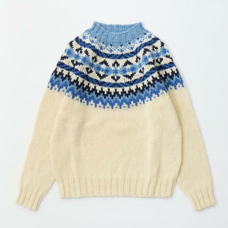 HARLEY OF SCOTLAND (ハーレーオブスコットランド) FAIRISLE YOKE CREW SWEATER 100%WOOL - CHEVIOT