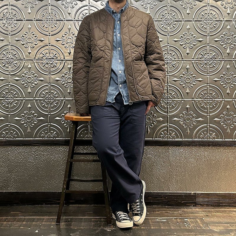 イギリス発「BARBOUR(バーブァー)」のRE ENGINEERED UTILITY LIDDESDALE QUILTED JACKET。オニオンキルティングを採用したキルティングジャケット。襟元はVネック。ジップフロント。フロント腰上の左右に容量のあるパッチポケット。左袖にはジップポケットを装備。カーディガンのようなデザインでアウター、インナーと活躍してくれる1着。