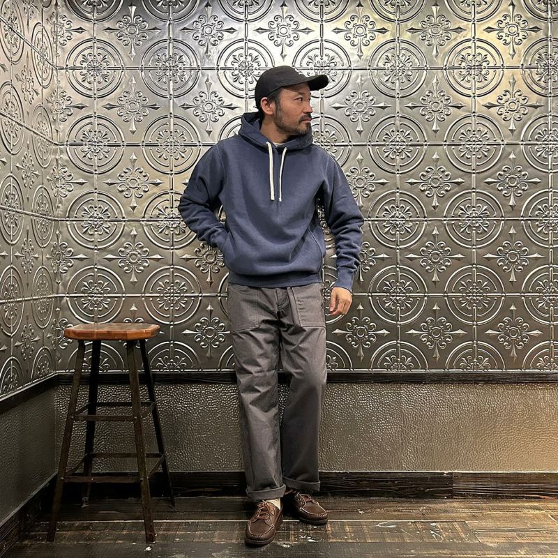 170センチ68キロやや肩幅広めの私の体型でMサイズでゆったりとしたサイズ感です。クラシックフィットという作りからこのサイズでも十分ゆったりとした着用感で着れます。ただオーバーサイズよりのかなりゆったりとした着用感がお好きな方でしたらLサイズのほうがオススメ。コシのある目の詰まった16オンスのアメリカらしい生地感。それに柔らかくて着心地の良いフレンチテリー素材を使用したヴィンテージ感漂う仕上がり。使い勝手&着回しの良いシンプルデザイン。冬時期こそ持って置きたくなる1着ですね。