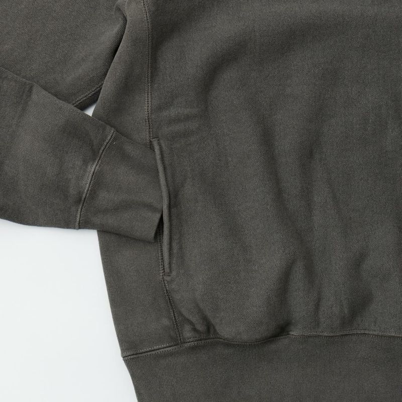 170センチ68キロやや肩幅広めの私の体型でMサイズでゆったりとしたサイズ感です。クラシックフィットという作りからこのサイズでも十分ゆったりとした着用感で着れます。ただオーバーサイズよりのかなりゆったりとした着用感がお好きな方でしたらLサイズのほうがオススメ。コシのある目の詰まった16オンスのアメリカらしい生地感。それに柔らかくて着心地の良いフレンチテリー素材を使用したヴィンテージ感漂う仕上がり。使い勝手&着回しの良いシンプルデザイン。冬時期こそ持って置きたくなる1着ですね。