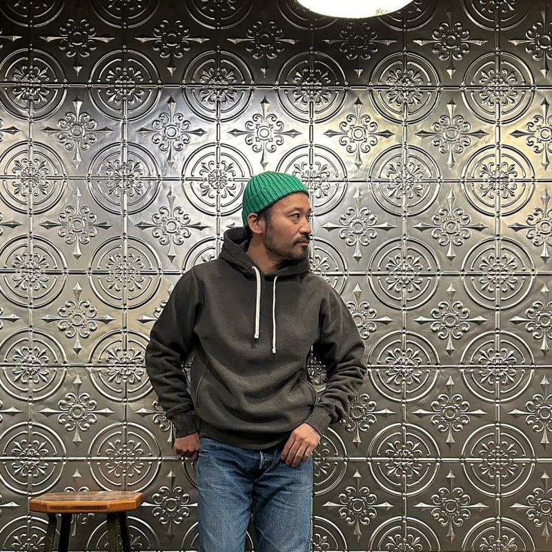 FELCO(フェルコ)の16oz TERRY CLASSIC FIT INVERSE WEAVE SWEAT HOODED PULLOVER。しっかりとした生地感の16オンスのフレンチテリー(裏起毛していないスウェット生地)を使用したプルオーバーパーカー。生地を横向きに使用することで縦縮みを軽減し、サイドリブが横縮み防止と動きやすさを実現したインバースウィーブを仕様。ガシガシ着倒してもへこたれないタフな1枚。袖と裾のリブはやや長めに設定されたヴィンテージを彷彿させるディテール。腰部分に装備された手の入れやすいハンドウォーマーポケットもポイント。従来のモデルよりも全体的にゆとりを持たせたクラシックフィット。ストレスのない着用感のスウェット。