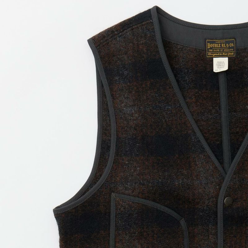 Double RL(ダブル アール エル)のMONROE VEST VEST WOOL/POLY JACQ。ウールとコットン混紡素材を使用したベスト。フロントに配置された4つのパッチポケット。背面にウエストのシルエット調節が可能なバックシンチ。前立てやアームホール、ポケットなどの縁はパイピング仕上げ。オリジナルのアンティークブラス仕上げのスナップボタン。素材はフェルトのようなダブルニットジャカード素材。落ち着いた色合いのオンブレチェックの雰囲気も良い1着。