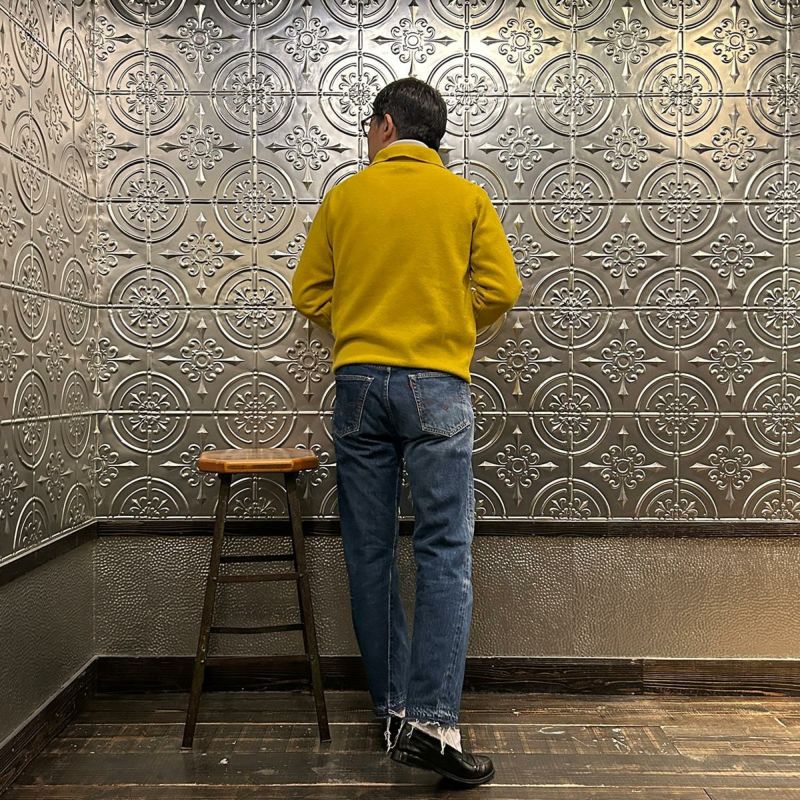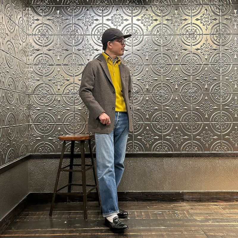 172センチ60キロで「38」でジャストサイズです。ロンTの上に着て丁度良いサイズ感。タートルネックのカットソーやシャツの上から着て重ね着も楽しめる長袖ニットポロ。生地が厚めのシャツの上に着る想定であれば「40」でも良いかなという印象です。一枚で着てもクルーネックよりは雰囲気があり、アウターの下に着た場合はシャツのような雰囲気も出せる便利さ。このウィリアムロッキーのニットポロの何が良いかと言いますと、比較的しっかりとしたキレイな襟型。ペタッとした平面的な襟ではなく、仕立ての良いシャツのような立体的な襟。この手のアイテムをビジネスでも着れるという方にもオススメしたい。ジャケット好きな方にはインナーに是非着て欲しいですね!インラインはカシミヤしかなかったので、幅広いお客様にお楽しみ頂けるように別注でラムウールに変更してもらいました。ラムだとチクチクするという方は中にコットンのタートルネックかシャツ、もしくはバンダナやネッカチーフを差してシャレた雰囲気を楽しんで下さい。