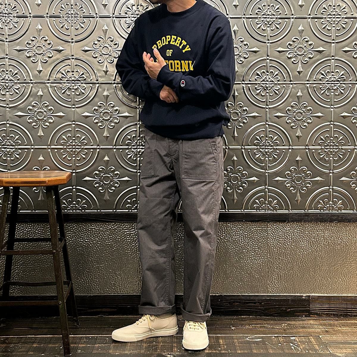 他の画像を見る Explorer別注 メンズ ファティーグパンツ コットン リバースサテン 日本製 国産 【Explorer別注】EMPIRE & SONS (エンパイア アンド サンズ) FATIGUE PANT MILITARY SLUB BACK SATEEN - NAVY 販売価格 ¥ 22,000 税込 お気に入りに登録する