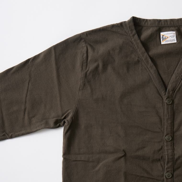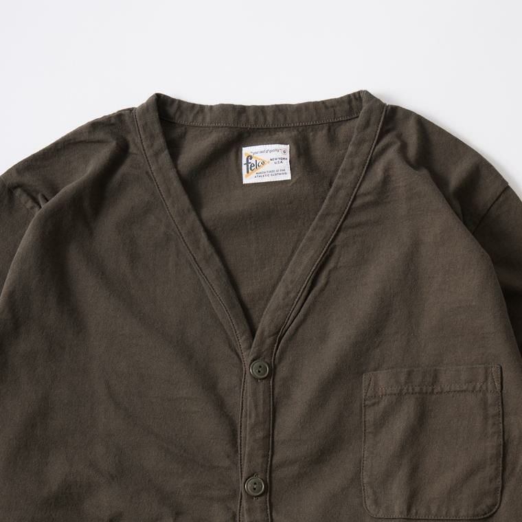 他の画像を見る メンズ バインダーVネック 7オンス シングル ジャージー カーディガン 日本製 FELCO (フェルコ) L/S BINDER V NECK CARDIGAN W/POCKET 7oz 16SINGLE RUFFY JERSEY - BW BROWN 販売価格 ¥ 12,100 税込 お気に入りに登録する