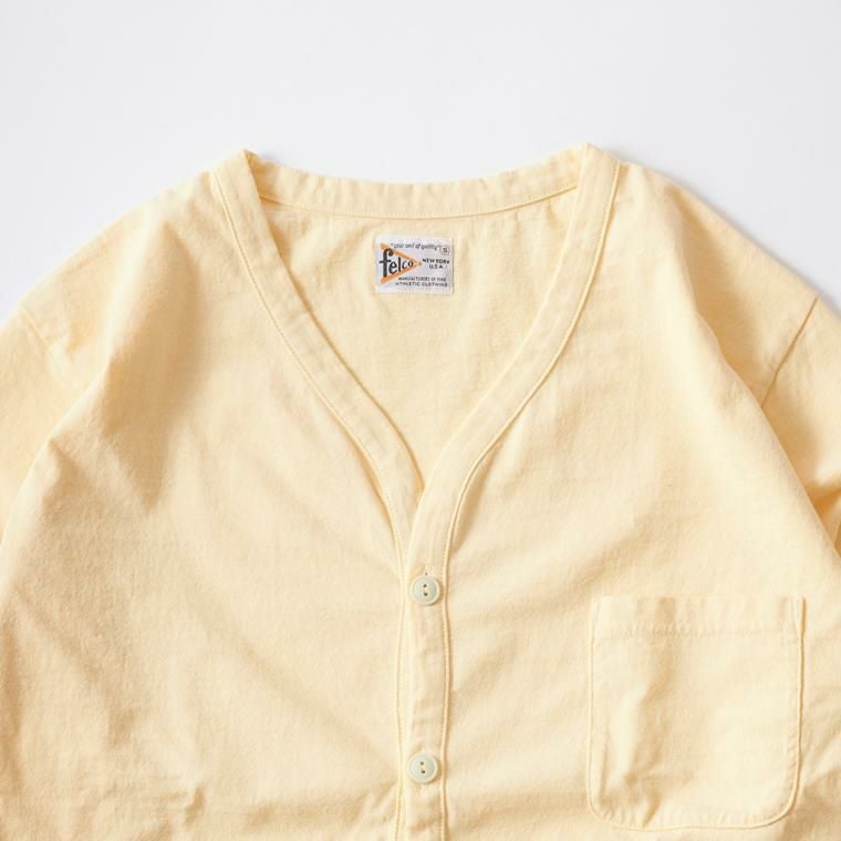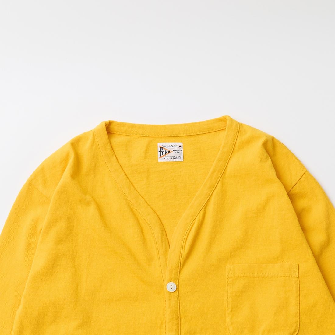 他の画像を見る メンズ バインダーVネック 7オンス シングル ジャージー カーディガン 日本製 FELCO (フェルコ) L/S BINDER V NECK CARDIGAN W/POCKET 7oz 18SINGLE JERSEY - VINTGE WASH YELLOW ¥ 9,900 税込 × 在庫切れ お気に入りに登録する