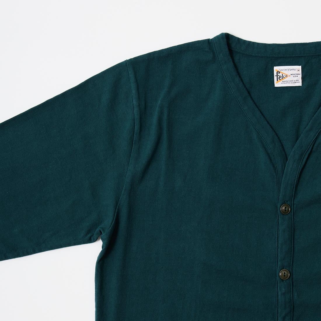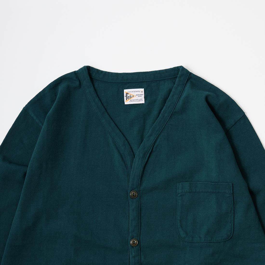 他の画像を見る メンズ バインダーVネック 7オンス シングル ジャージー カーディガン 日本製 FELCO (フェルコ) L/S BINDER V NECK CARDIGAN W/POCKET 7oz 16SINGLE RUFFY JERSEY - DK GREEN 販売価格 ¥ 10,780 税込 × 在庫切れ お気に入りに登録する