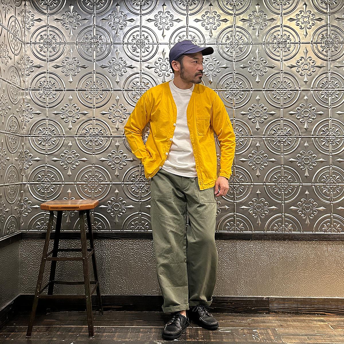 他の画像を見る メンズ バインダーVネック 7オンス シングル ジャージー カーディガン 日本製 FELCO (フェルコ) L/S BINDER V NECK CARDIGAN W/POCKET 7oz 16SINGLE RUFFY JERSEY - YELLOW GOLD 販売価格 ¥ 10,780 税込 お気に入りに登録する