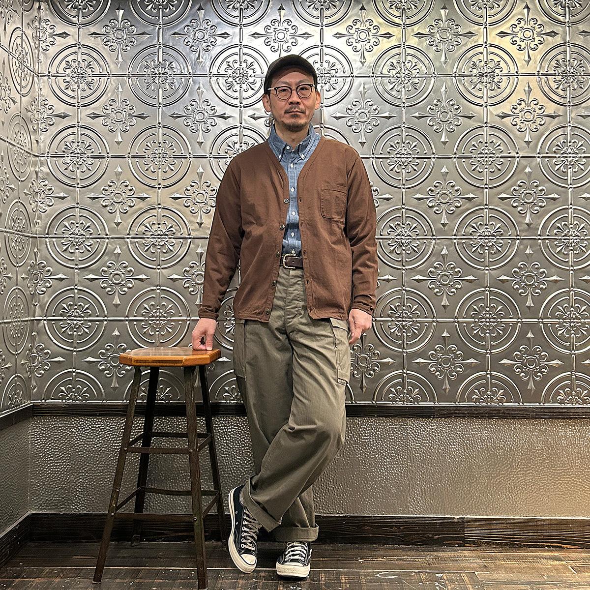 他の画像を見る メンズ バインダーVネック 7オンス シングル ジャージー カーディガン 日本製 FELCO (フェルコ) L/S BINDER V NECK CARDIGAN W/POCKET 7oz 16SINGLE RUFFY JERSEY - PGR BROWN 販売価格 ¥ 12,100 税込 お気に入りに登録する