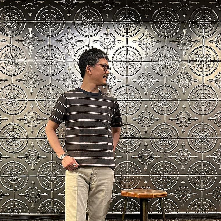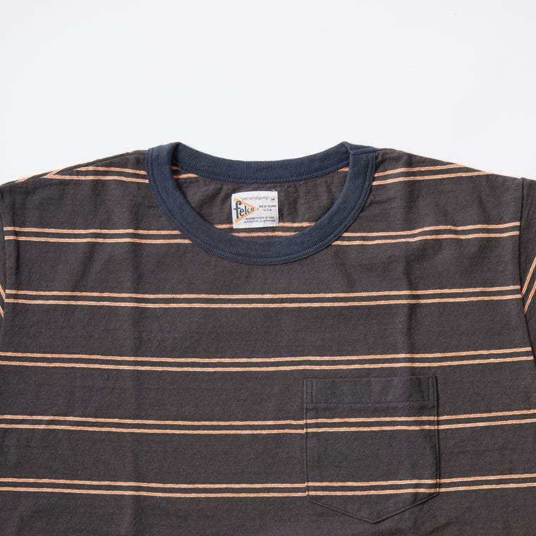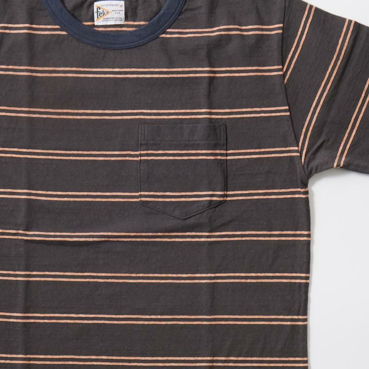 他の画像を見る メンズ クルーネック ポケットTシャツ アイビーストライプ 日本製 FELCO (フェルコ) S/S CREW POCKET TEE IVY STRIPE - CHARCOAL BLK_CHL NAVY ¥ 7,920 税込 × 在庫切れ お気に入りに登録する