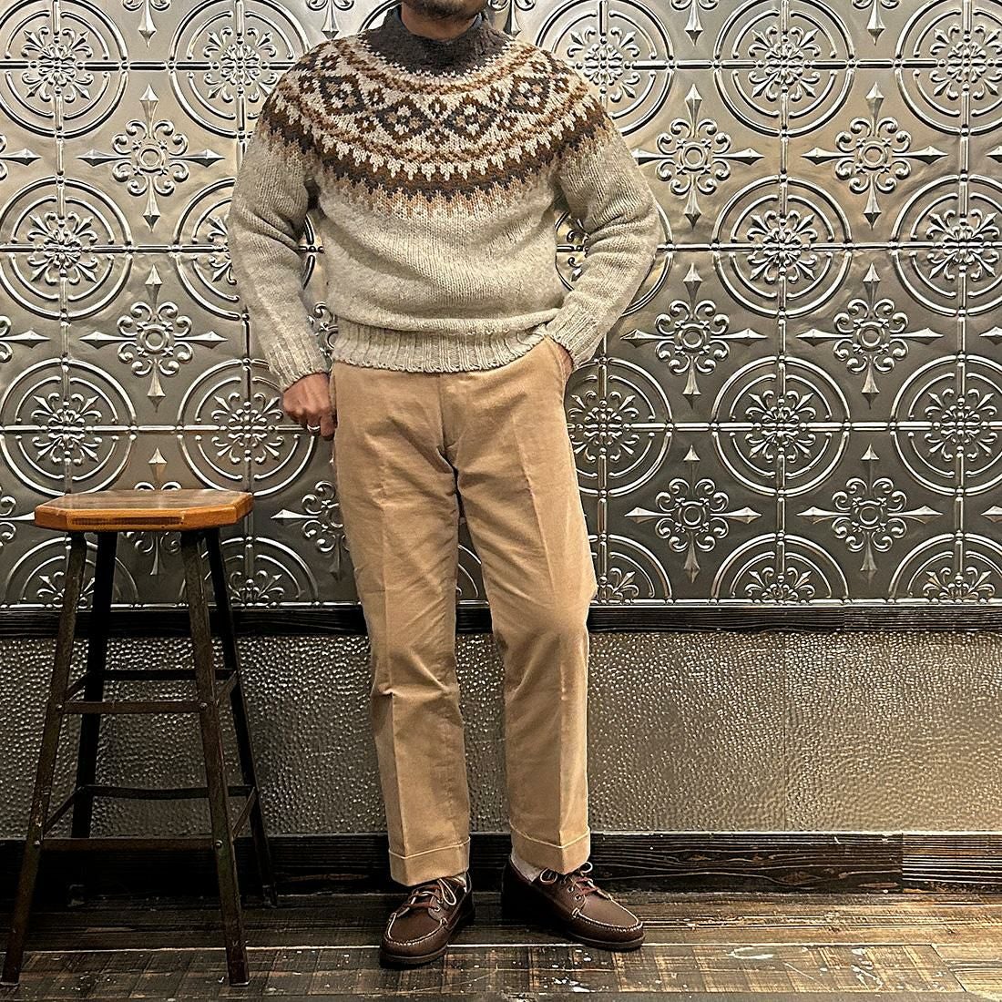 他の画像を見る メンズ フェアアイル ヨーク クルーネック セーター スコットランド製 HARLEY OF SCOTLAND (ハーレーオブスコットランド) FAIRISLE YOKE CREW SWEATER 100%WOOL - PORTLAND 販売価格 ¥ 28,380 税込 × 在庫切れ お気に入りに登録する