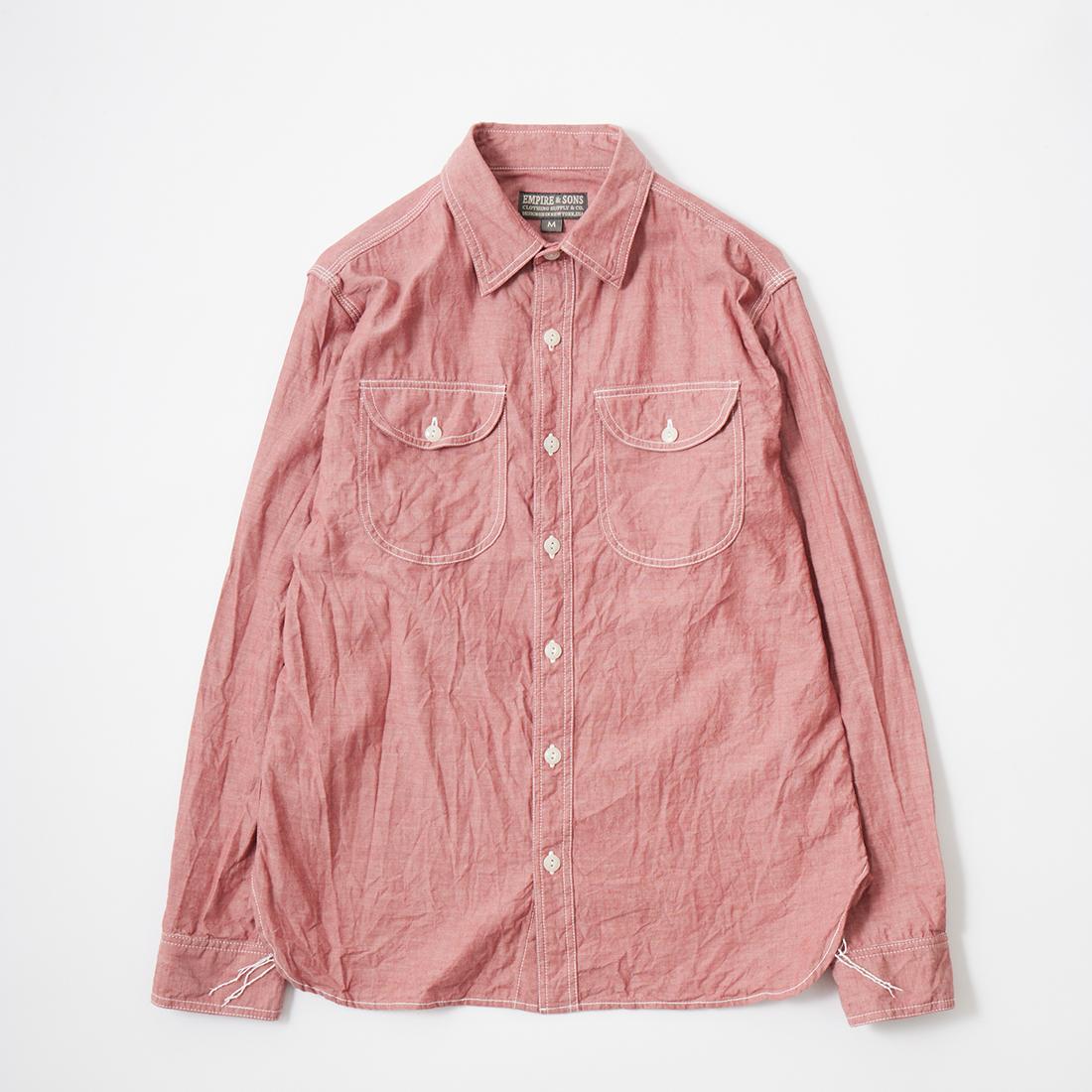 他の画像を見る ワークシャツ 5オンス オーガニックコットン セルビッチシャンブレー 日本製 EMPIRE & SONS (エンパイア アンド サンズ) L/S UTILITY WORK SHIRT 5oz ORGANIC COTTON SELVEGE CHAMBRAY - RED 販売価格 ¥ 18,480 税込 × 在庫切れ お気に入りに登録する