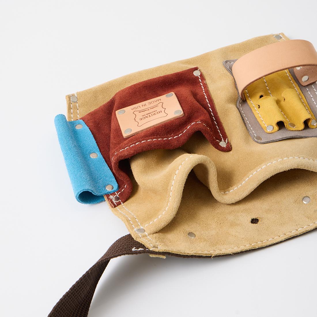 他の画像を見る メンズ スエード ウエストバッグ ツールポーチ アメリカ製 HERITAGE LEATHER (ヘリテイジレザー) MULTI COLOR SUEDE 5POCKET NAIL AND TOOL POUCH - MULTI 販売価格 ¥ 16,280 税込 × 在庫切れ お気に入りに登録する