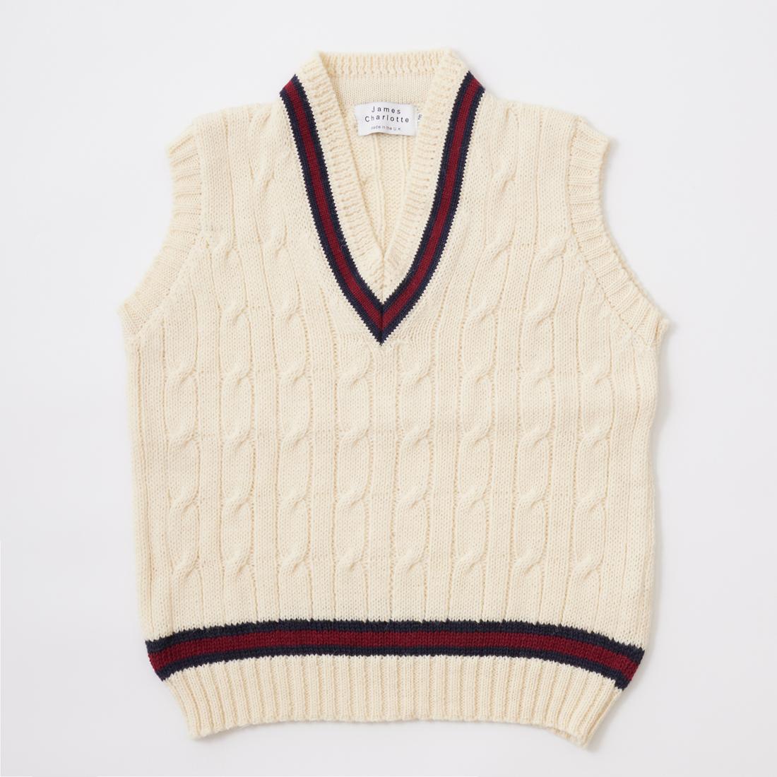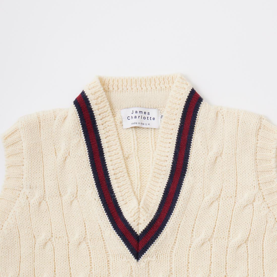 他の画像を見る クリケット ケーブル Vネック ニットベスト ブリティッシュウール イギリス製 ’ JAMES CHARLOTTE (ジェームス シャルロット) CRICKET CABLE VEE SLIPOVER 100% BRITITSH WOOL SWEATER - ARAN - NAVY_Lt BURGUNDY_NAVY 販売価格 ¥ 24,750 税込 × 在庫切れ お気に入りに登録する