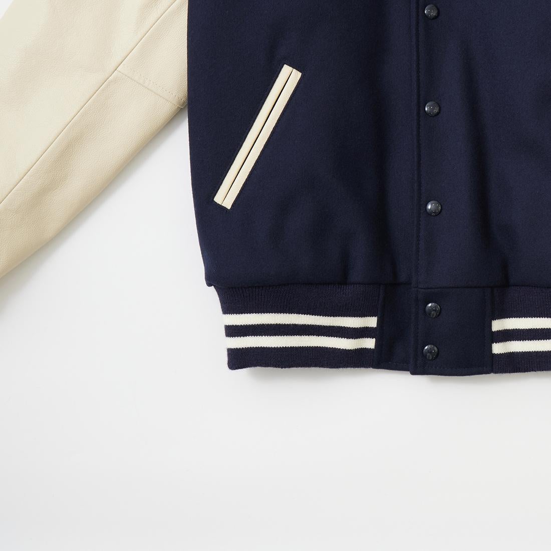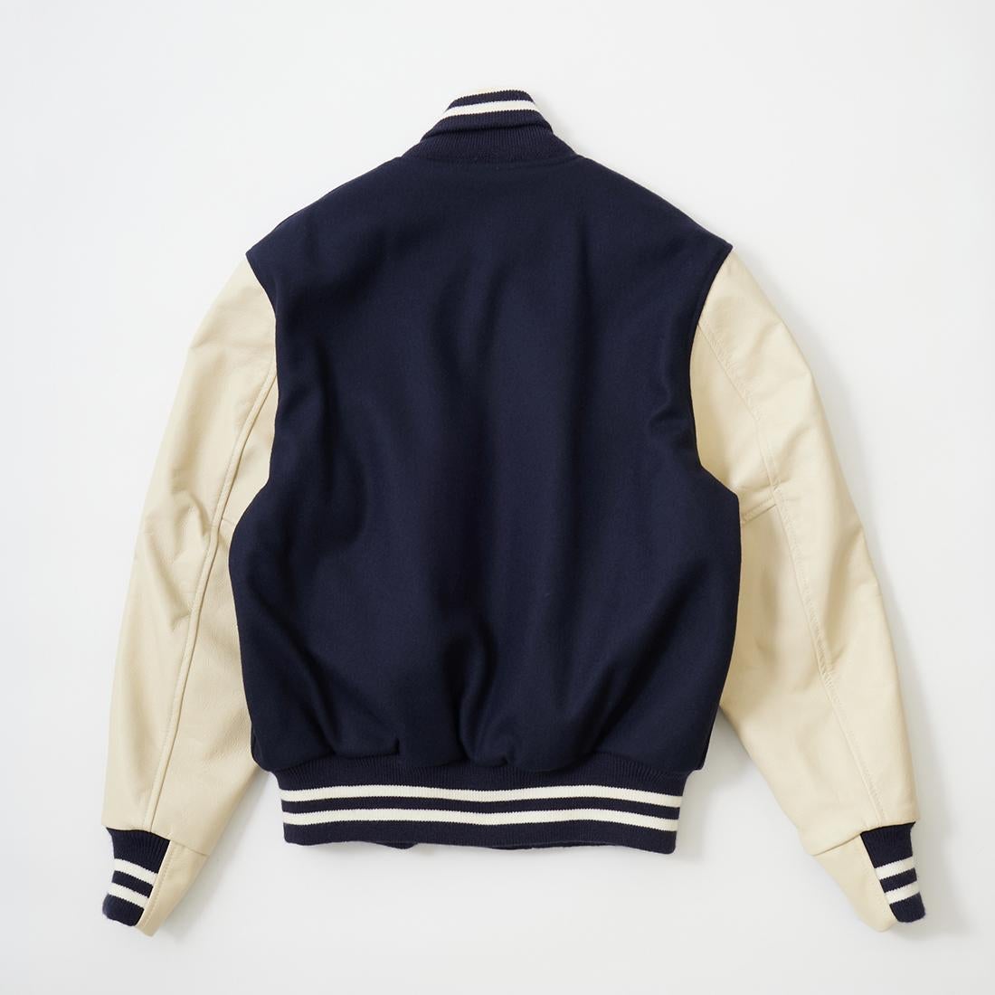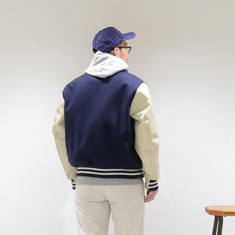 他の画像を見る メンズ アウター スタジャン アメリカ製 アメカジ GB SPORTS (ジービースポーツ) THE ALBANY - CLASSIC FIT SNAP FRONT WOOL LEATHER VARSITY JACKET QUILT LINING - NAVY MELTON_CREAM COW LEATHER 販売価格 ¥ 118,800 税込 × 在庫切れ お気に入りに登録する