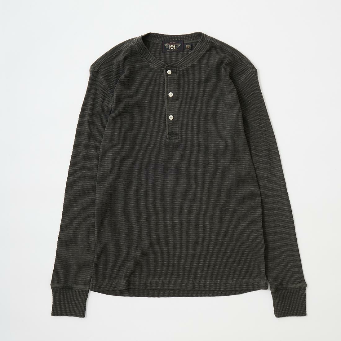 他の画像を見る [正規取扱店] Double RL / ダブルアールエル 定番モデル RRL Ralph Lauren (ダブル アールエル ラルフローレン) HENLEY LONG SLEEVE KNIT COTTON NOV TEXTURE - BLACK 販売価格 ¥ 26,400 税込 お気に入りに登録する