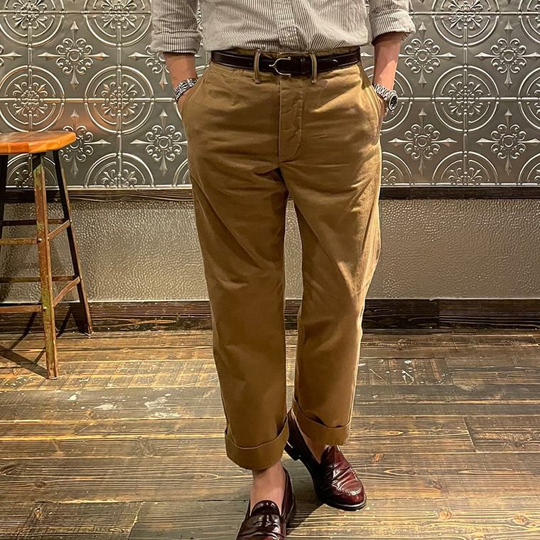 他の画像を見る [正規取扱店] Double RL / ダブルアールエル 定番モデル RRL Ralph Lauren (ダブル アールエル ラルフローレン) OFFICER'S FLAT PANT CTN PIECE DYE TWILL - BEIGE_KHAKI 販売価格 ¥ 42,900 税込 お気に入りに登録する