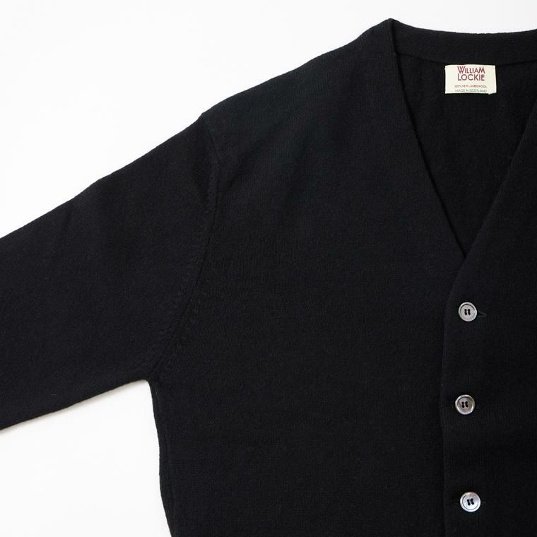 他の画像を見る メンズ ラムウール Vネック ニット カーディガン スコットランド製 WILLIAM LOCKIE (ウィリアム ロッキー) LAMBSWOOL CARDIGAN W/SIDE BUTTON - BLACK 販売価格 ¥ 37,400 税込 お気に入りに登録する