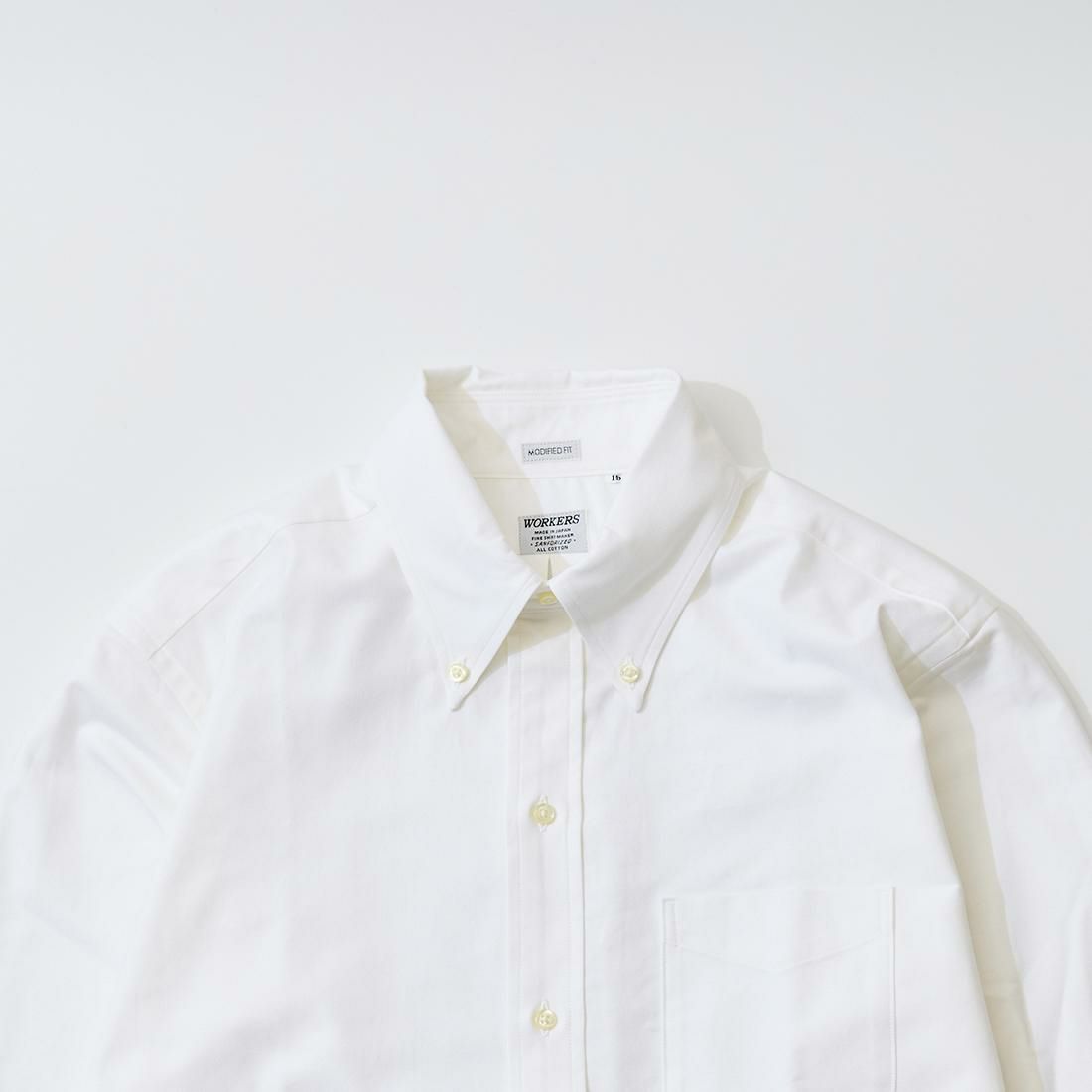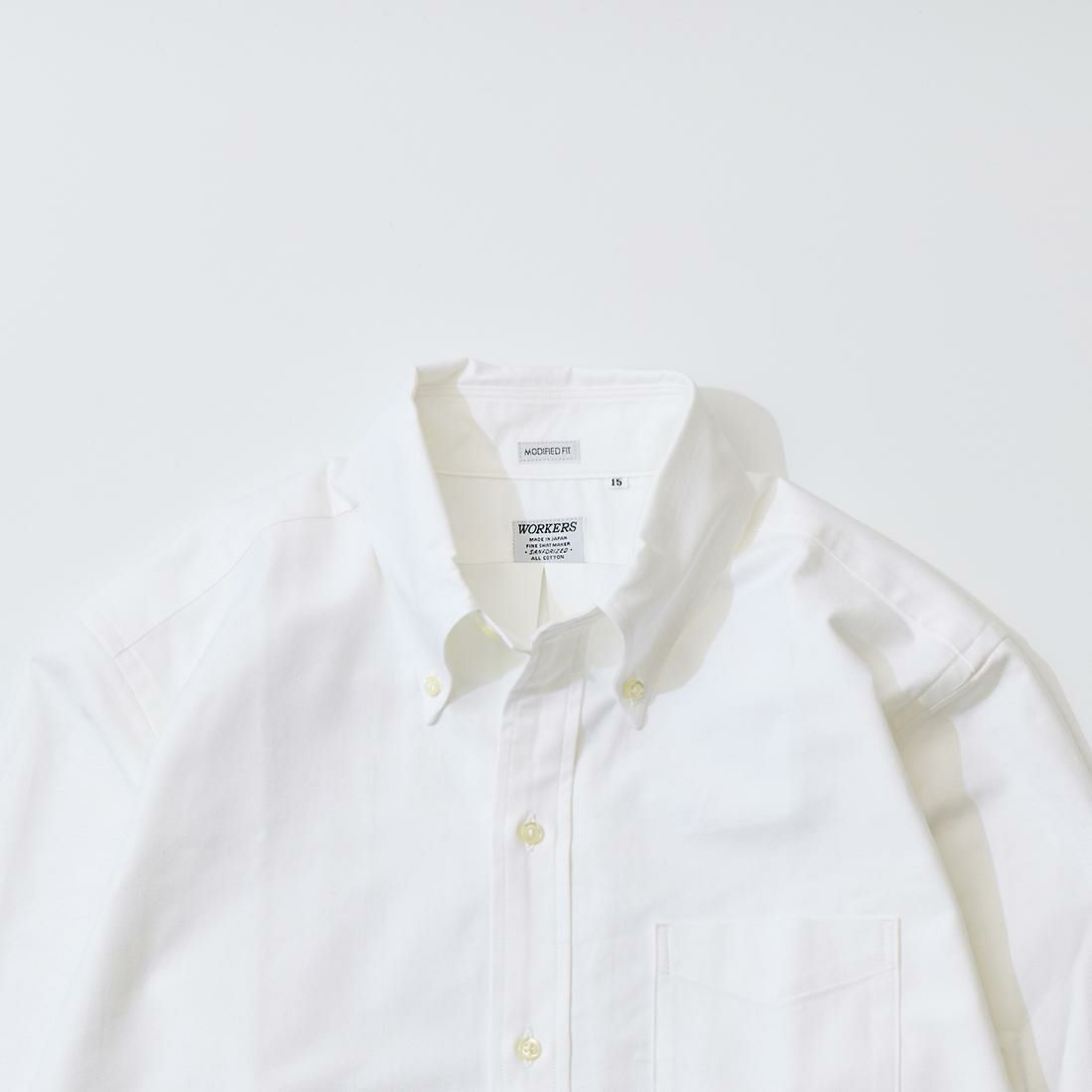 他の画像を見る モディファイド 6ボタン ボタンダウン スーピマオックスフォードシャツ 日本製 WORKERS (ワーカーズ) MODIFIED 6 BUTTON BD SUPIMA OX - WHITE 販売価格 ¥ 18,700 税込 お気に入りに登録する